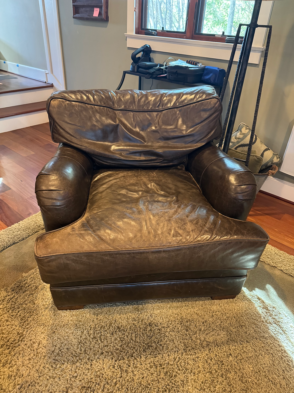 A large dome shade features a streamlined silhouette for our Butte Pendant, complete with an aged brass fixture and a cloth-covered cord. Each shade is made with high-quality spun aluminum. Excellent condition. Retail $649-